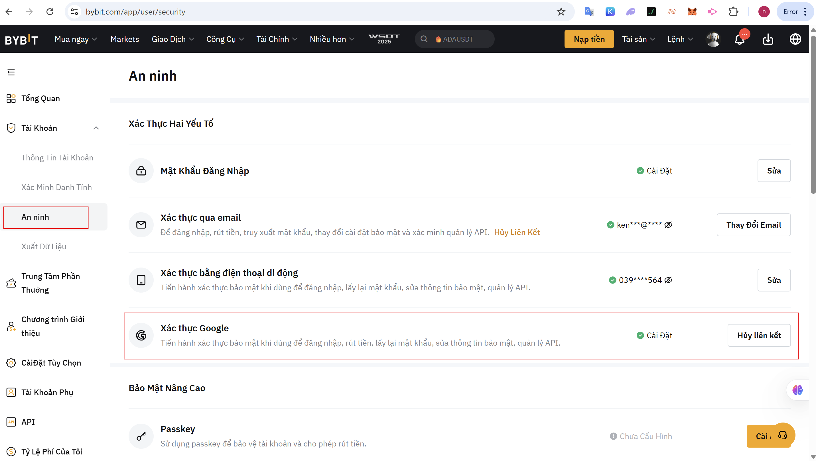 • Bảo mật Email: Email liên kết với tài khoản Bybit của bạn cũng cần được bảo mật 2 lớp.