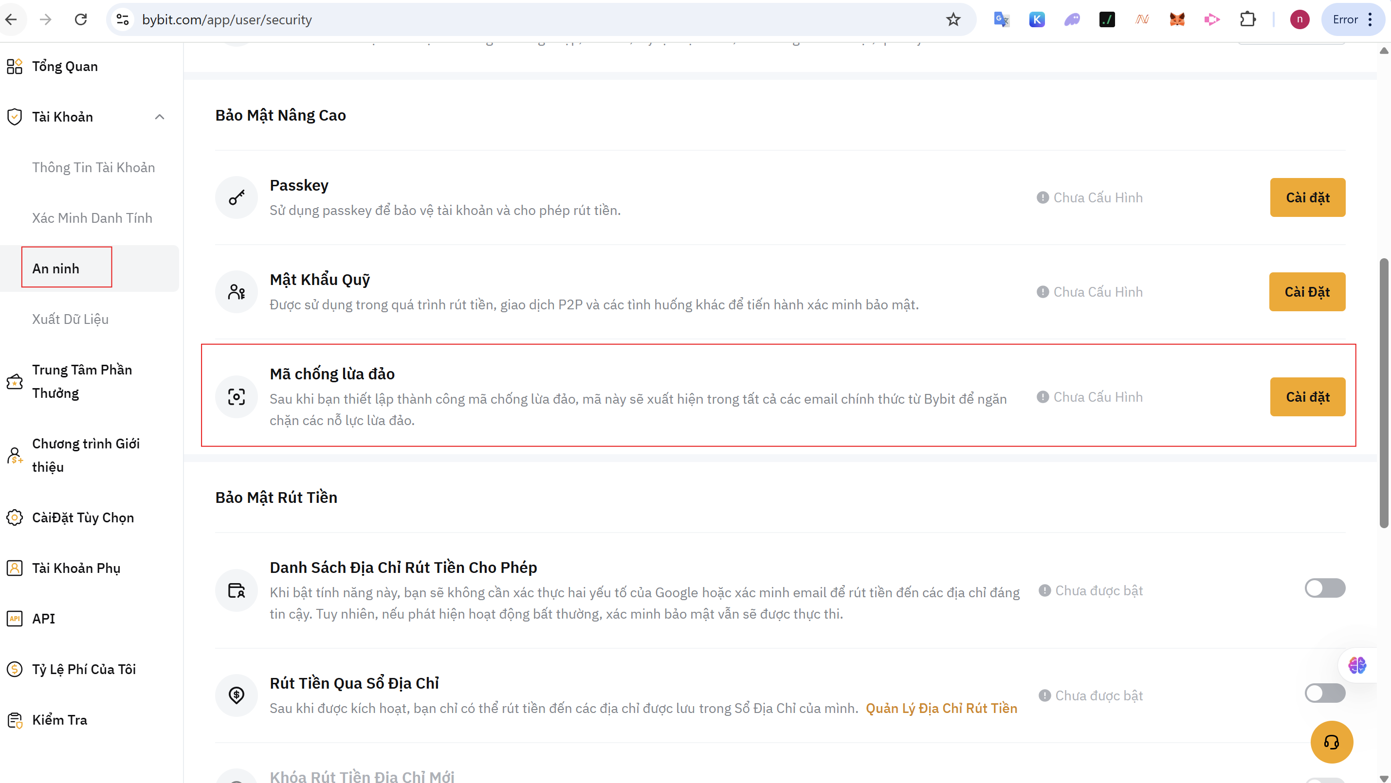 Bước 2: Thiết Lập Mã Chống Giả Mạo (Anti-Phishing Code)