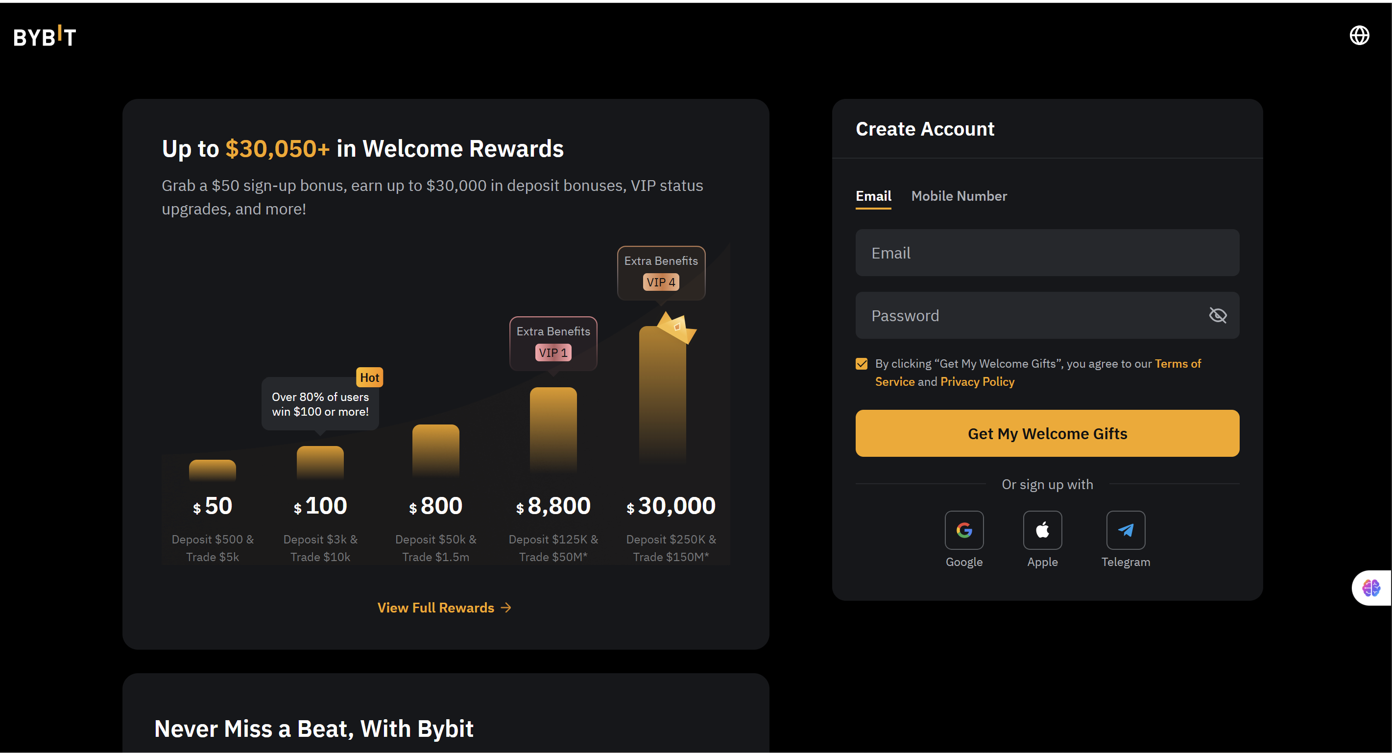 - Truy cập link và nhận ưu đãi: bybit.com.