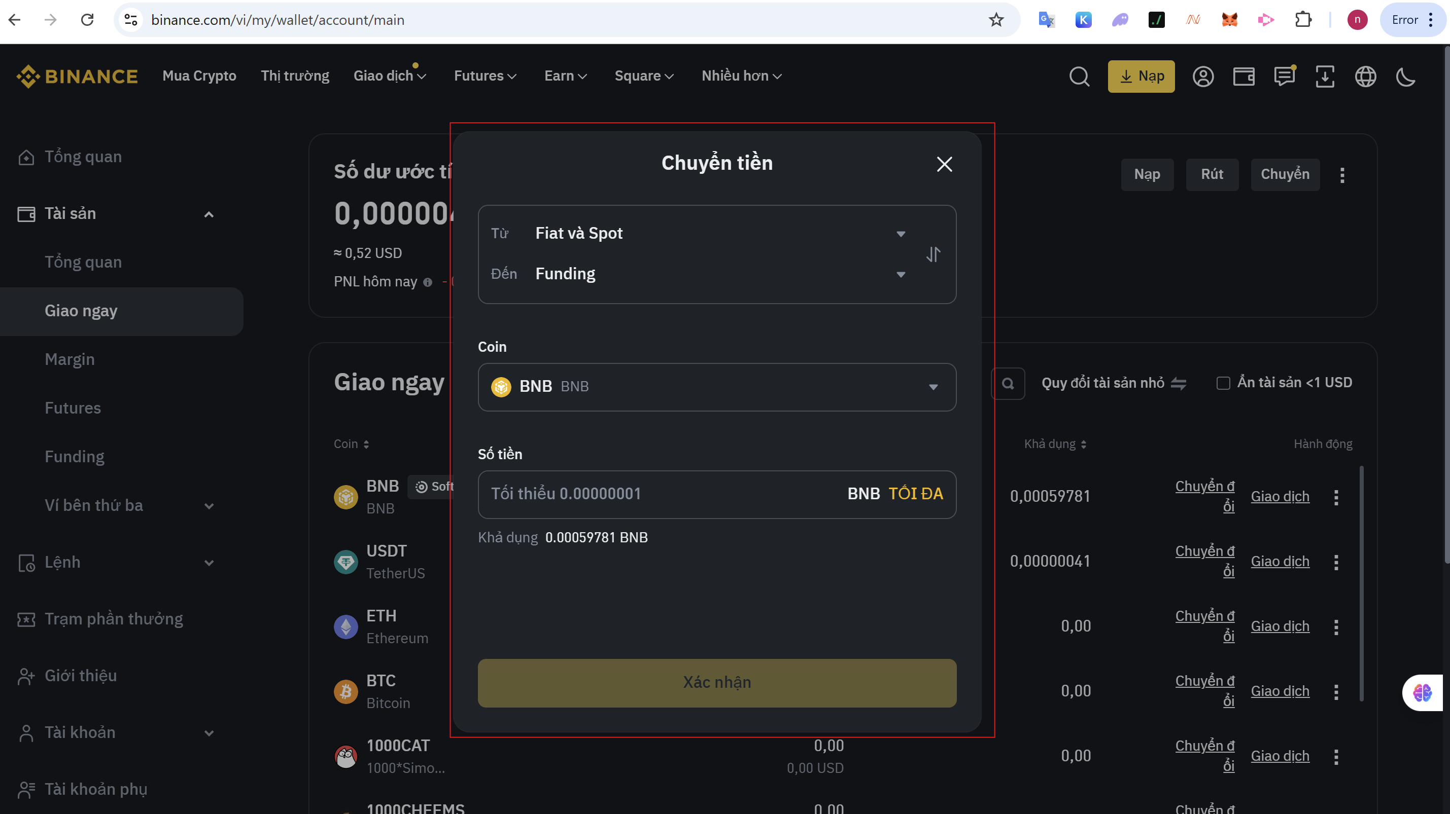 Bước 1: Chuyển USDT Từ Ví Spot Sang Ví Funding